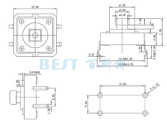 輕觸開(kāi)關(guān)TS-1103參考圖紙: